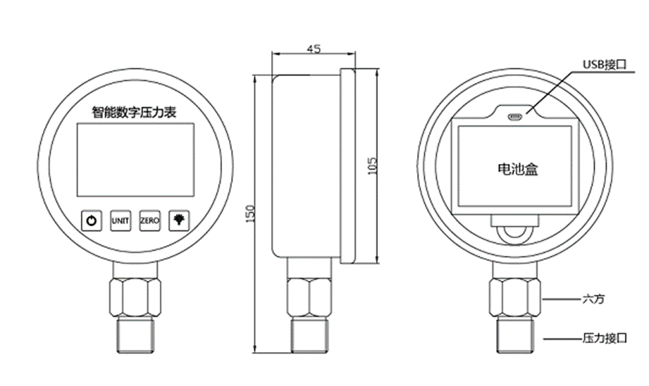 SUAY80電池供電壓力表是一款高精度智能型數字壓力表,內置高精度壓力傳感器,能夠準確的實時顯示壓力,并且具有精度高、長期穩定性好的特點。配備5位顯示的大尺寸LCD液晶顯示,具有清零、背光、開關機、單位切換、低電壓報警、峰值記錄等多種功能,操作簡單,安裝方便。殼體和接頭采用304不銹鋼,抗震性好,能夠測量氣體、液體、油等對不銹鋼無腐蝕的介質。用3節5號電池供電,也可以采用USB供電,續航功耗低、時間長,適用于便攜式壓力測量、設備配套、校驗設備等壓力測量領域。